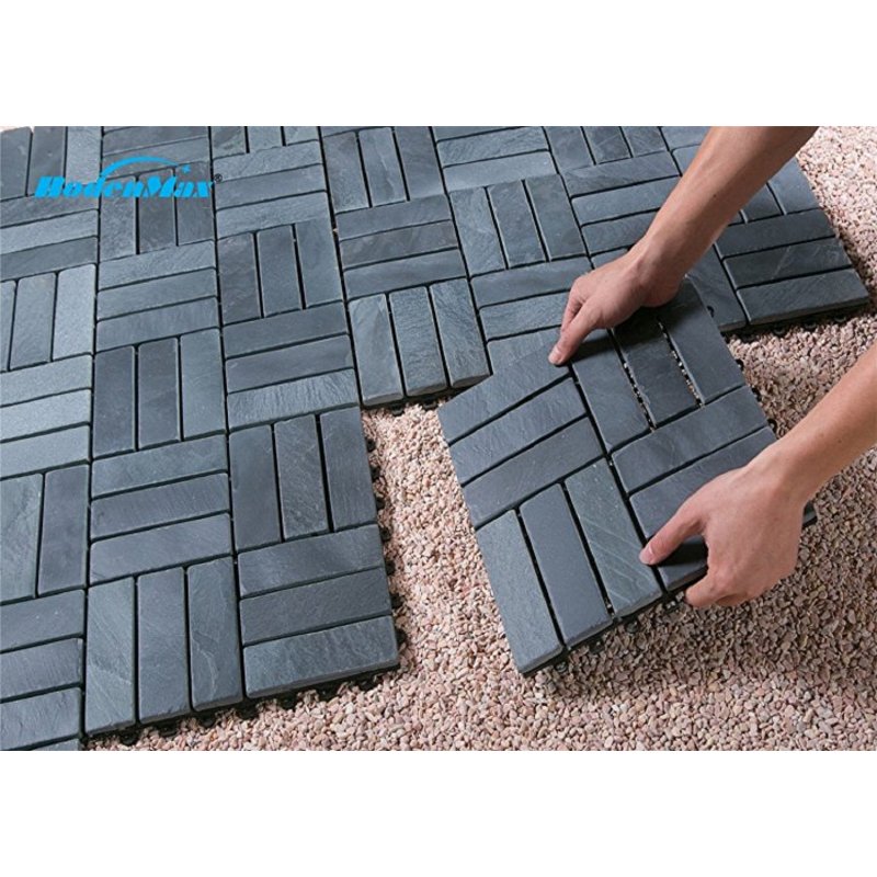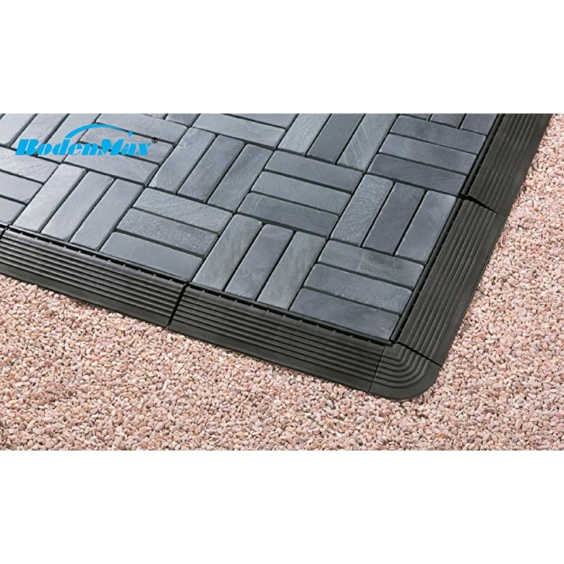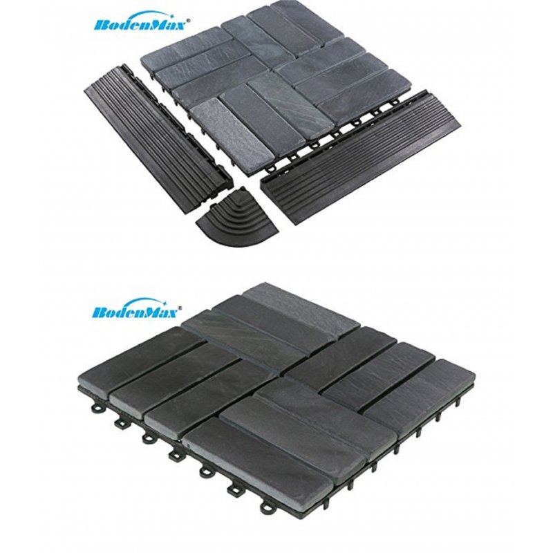 | Mit wenigen Handgriffen können Sie Ihren Balkon, Garten, Ihre Terrasse oder Ihre Gartenlaube komplett umgestalten und ihr ein elegantes und schickes Aussehen verleihen. | Dank der einfachen Verlegung von BodenMax-Fliesen kann jede Fläche im Innen- oder Außenbereich problemlos verfliest werden. | Große Auswahl an Fliesen für Außenpflaster und Gartenwege. Wählen Sie aus 5 verschiedenen hochwertigen Materialien und 6 eleganten Mustern und 2 verschiedenen Größen und verwirklichen Sie das Design, von dem Sie schon immer geträumt haben. |