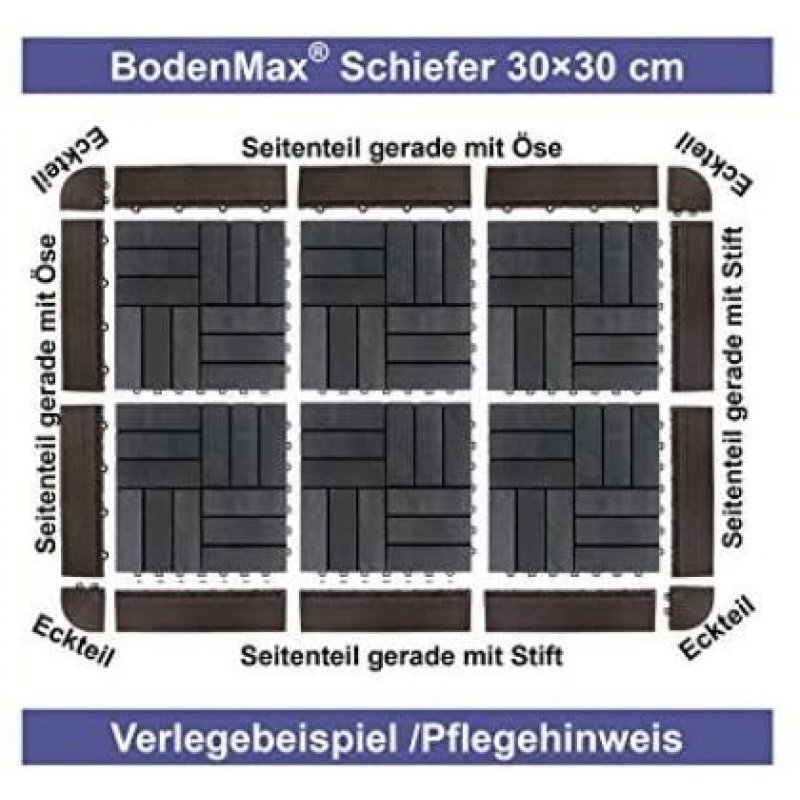 BodenMax® Naturstein Click Bodenfliesen Set Terrassenfliesen Slate Stone Terrassenplatte anthrazit Klickfliesen Seitenteil gerade mit Öse schwarz(14 Stück)