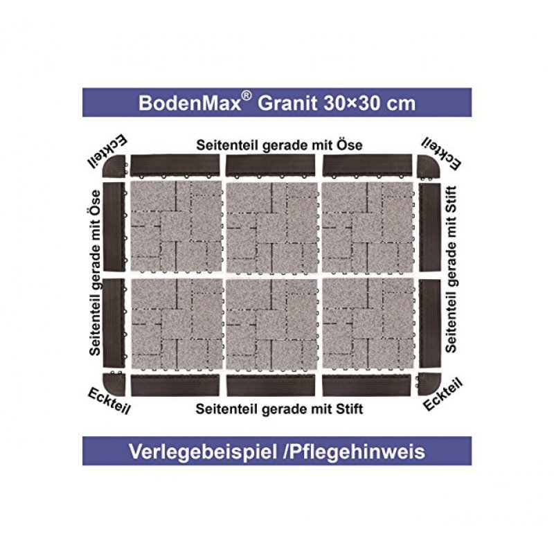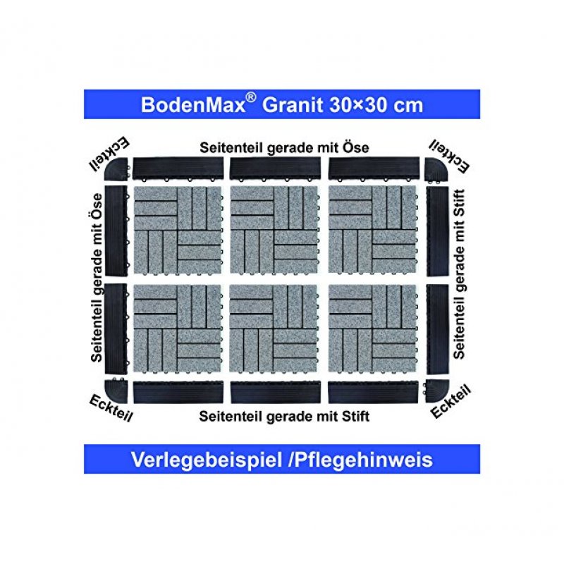 (Nota: Las Baldosas y las esquinas no vienen incluídas con el set y deben pedirse por separado en nuestra tienda de Amazon. Los accesorios que compra aquí son únicamente LOS LATERALES. Estos accesorios vienen diseñados EXCLUSIVAMENTE para baldosas BodenMax).