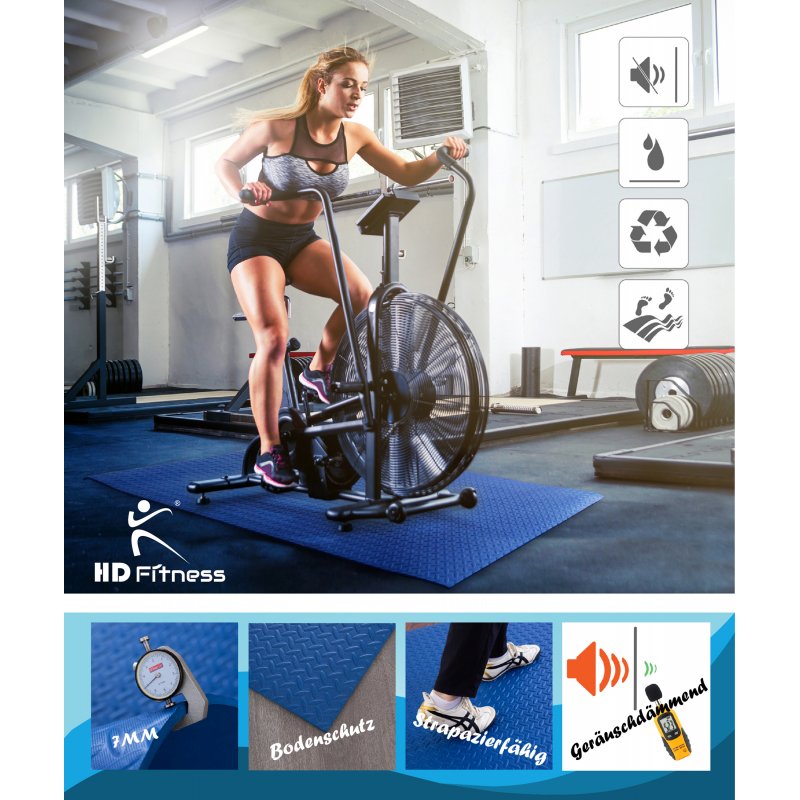 - Alfombra para proteger sus pisos de equipos deportivos como cintas de correr, entrenadores elípticos, bicicletas de spinning, bancos de pesas, etc.