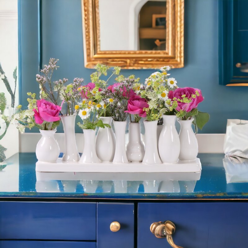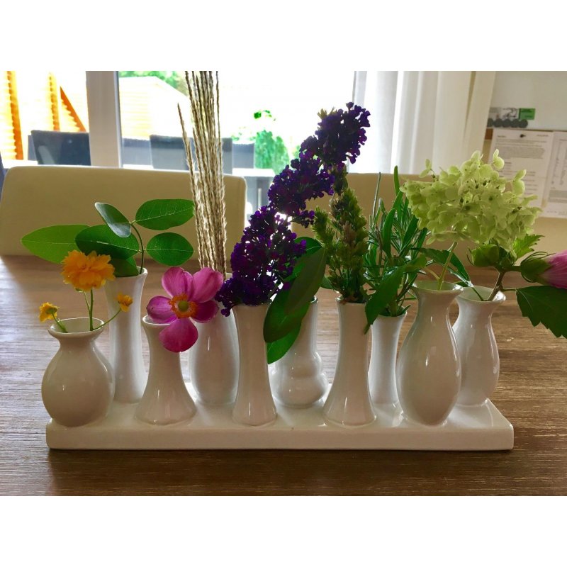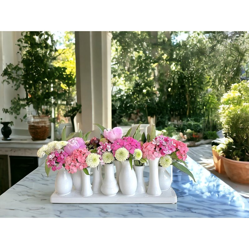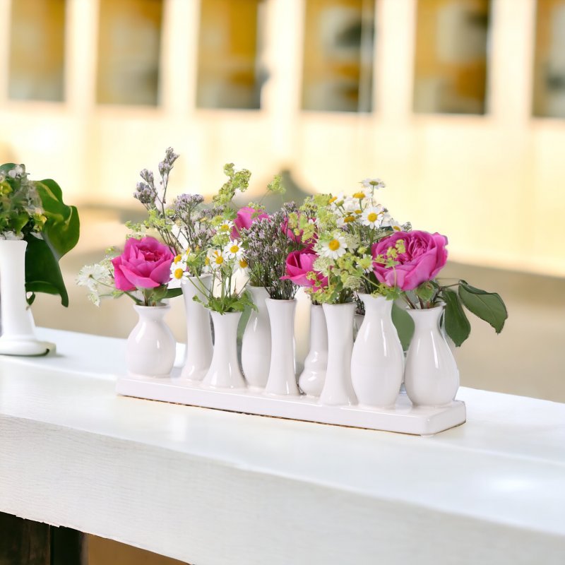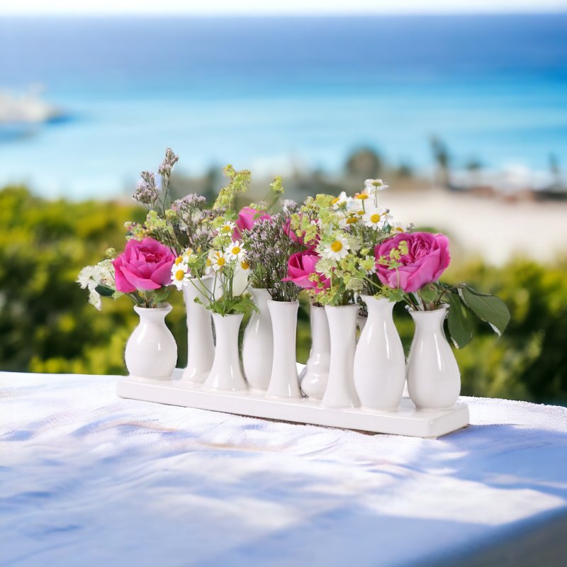Floreros de cerámica - Set de floreros decorativos para bodas, regalos, buffets, cocinas, living 30 x 6 cm (1 set de 10 jarrones blancos)
