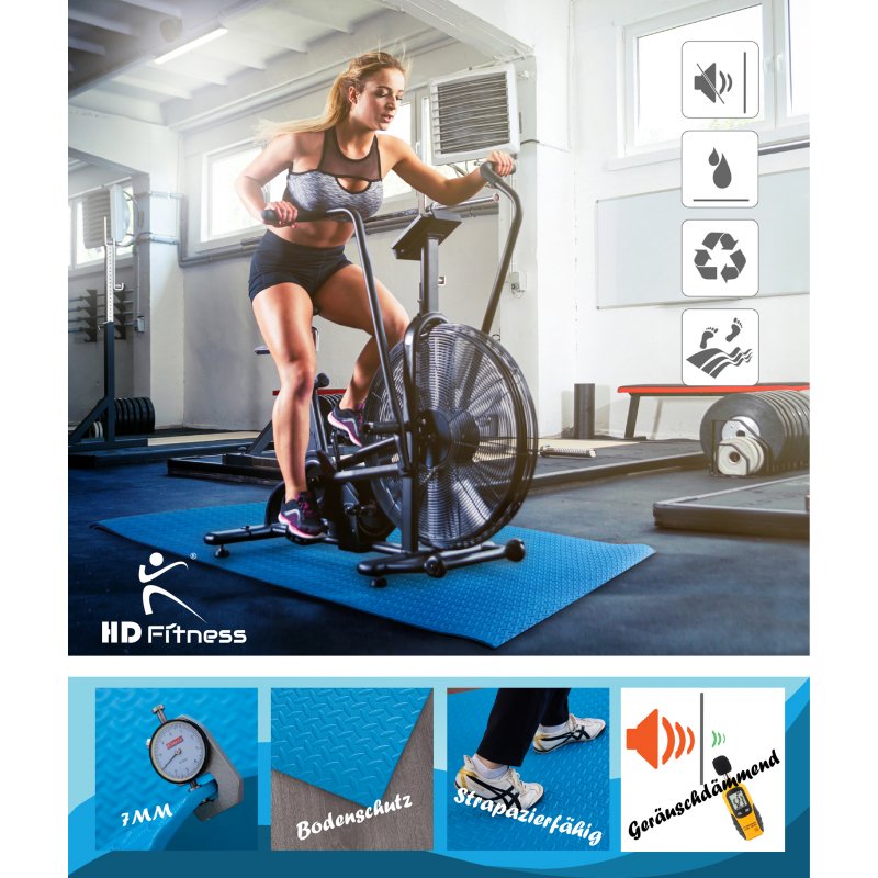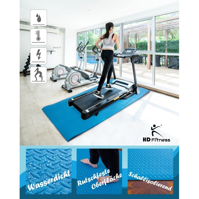 HD Fitness Tapis de Fitness et Sport pour Yoga, Gym, Tapis de course, Musculation, Vélo Elliptique et Spinning bike - Antidérapant et Isolant - Tapis de Protection de Sol pour Salle de Fitness - Bleu 200x100cm