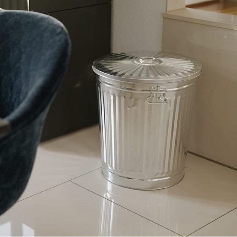 Jinfa 4er-Set Retrodesign Mülleimer mit Griffen und Deckel + 50 Müllbeutel | Zink| 18L