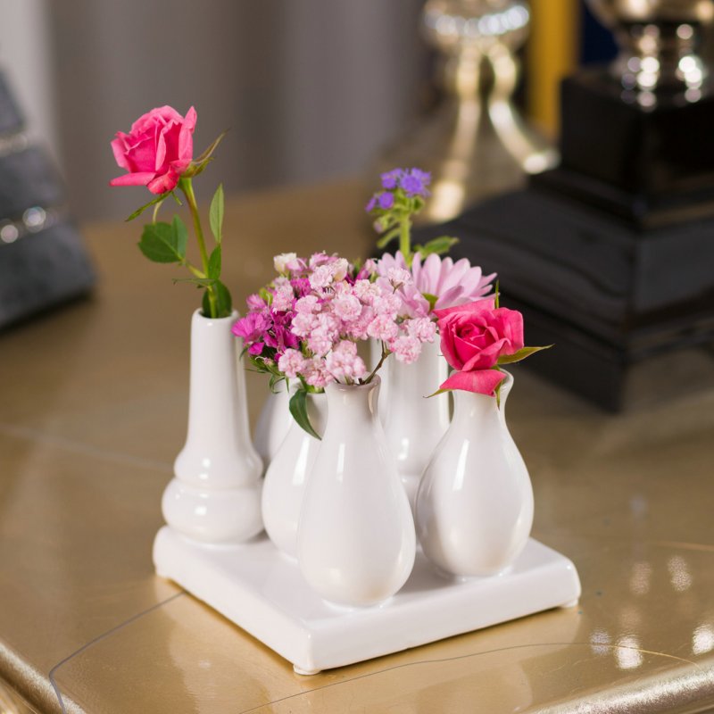 Jinfa Assortment of 7 Ceramic Flower Vases - Decorative Flower Pots - 1 Tray of 7 White Vases