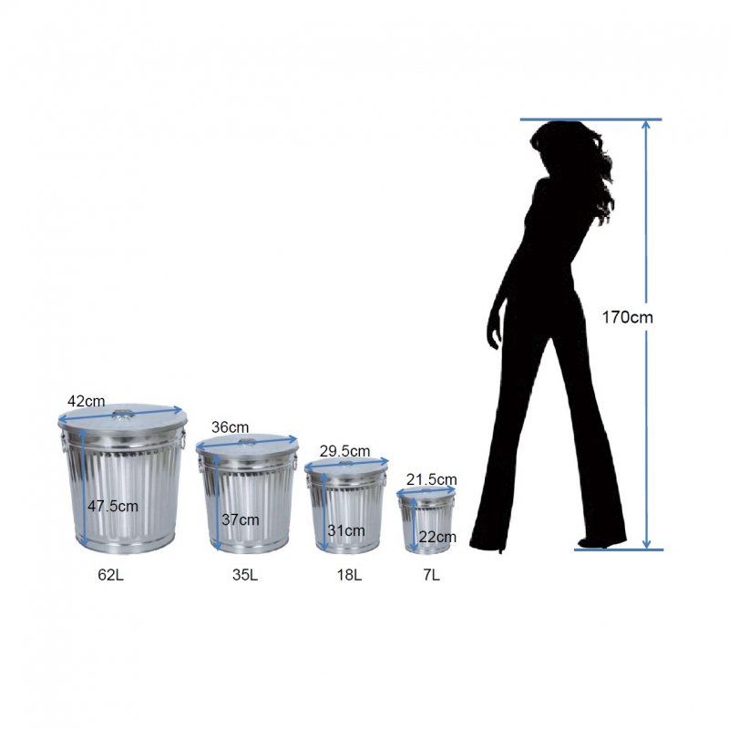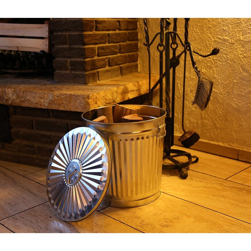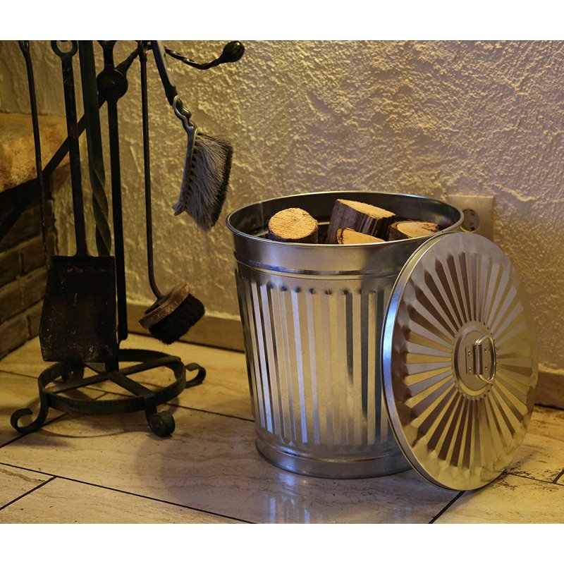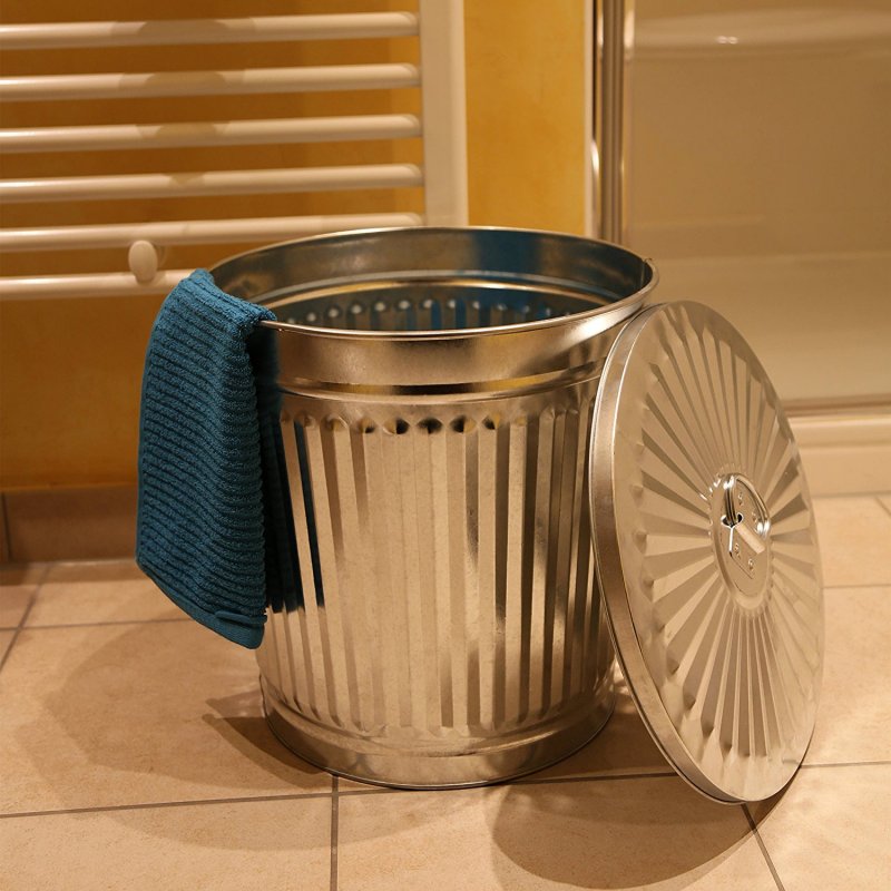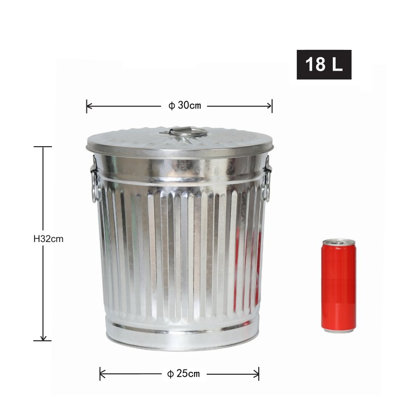 Jinfa | Galvanized metal trash bin with handles and lid | Zinc | Diameter Ø 29 cm | Height 31,5 cm | Volume: 18 litres