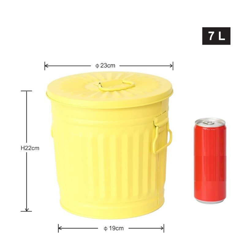 Jinfa Metal Trash Can with handles | 7 Litres | Ø 21.5 cm, Height 21.5 cm | Size S | Yellow