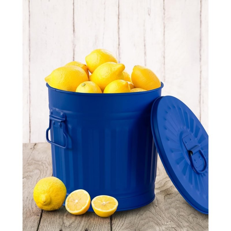 Jinfa Metall Mülleimer mit Deckel und Tragegriffen ? für gelben Sack,Pfandbehälter,Kamin Ascheeimer,Futtertonne,Pelletbehälter | Blau | 7L