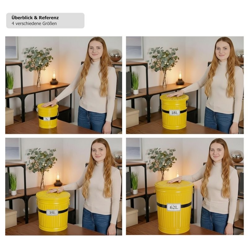 Jinfa Metall Mülleimer mit Deckel und Tragegriffen ? für gelben Sack,Pfandbehälter,Kamin Ascheeimer,Futtertonne,Pelletbehälter | Gelb | 7L