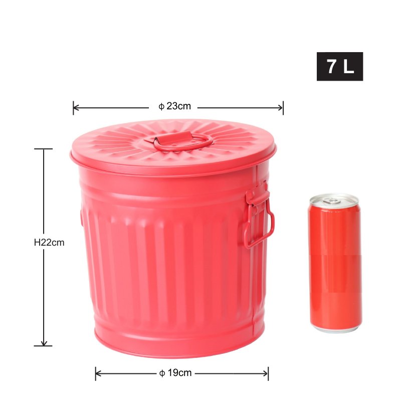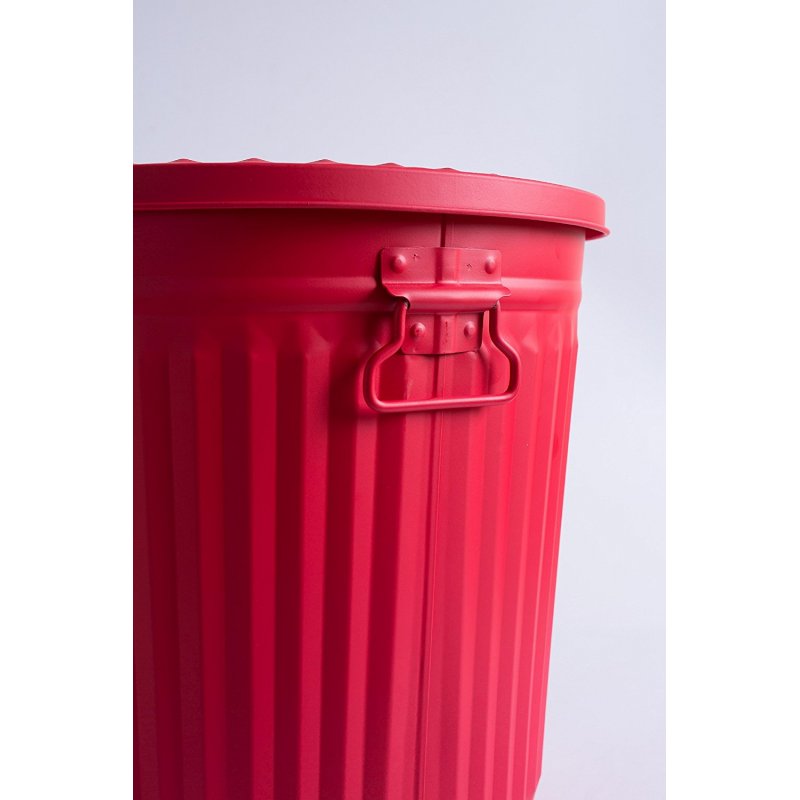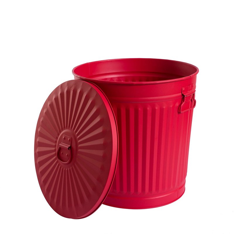 Jinfa | Poubelle en métal galvanisé avec poignées et couvercle | Rouge | Diamètre Ø 21,5 cm - Hauteur 21,5 cm | Capacité: 7 litres
