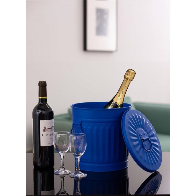 Jinfa® | Piccolo bidone della spazzatura in metallo con manici e coperchio | Blu | Ø 21,5 cm, h 21,5 cm | Capienza 7 litri