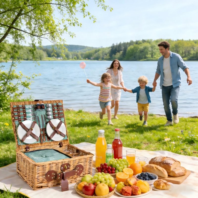 Picknickkorb handgefertigt mit Besteck, Geschirr und Kühlfach inklusive Ein erfolgreiches Picknick setzt wenige Elemente voraus: Schönes Wetter, eine gemütliche Ecke und ein gepackter Picknickkorb. Hier kaufen Sie einen Picknickkorb, der aus Naturweide gewebt wurde.