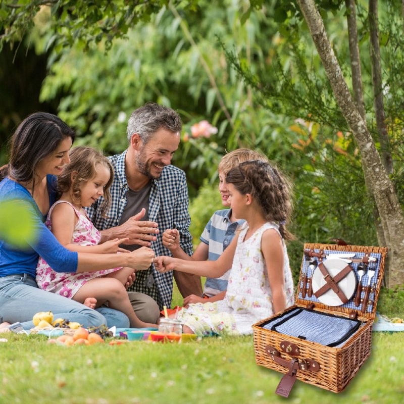 Genießen Sie unvergessliche Momente am Strand, in einem Park oder einem See. Der Korb ist geräumig und hat ein klassisches, ansprechendes sowie ein zeitloses Design. Der Innenraum ist mit Tartan-Stoff ausgekleidet, der Farbe und Stil mit in Ihr Picknick bringt.