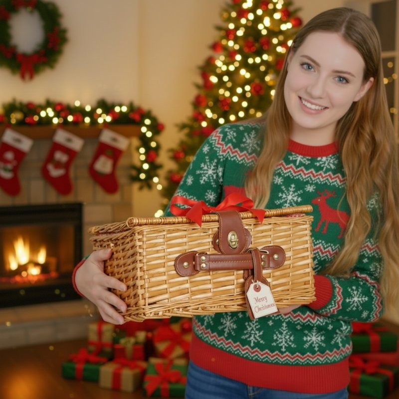 Handgefertigter Picknickkorb aus Weide für 2 oder 4 Personen. Unser Korb ist perfekt als Geschenk oder für ein Ausflug mit Familie und Freunden.