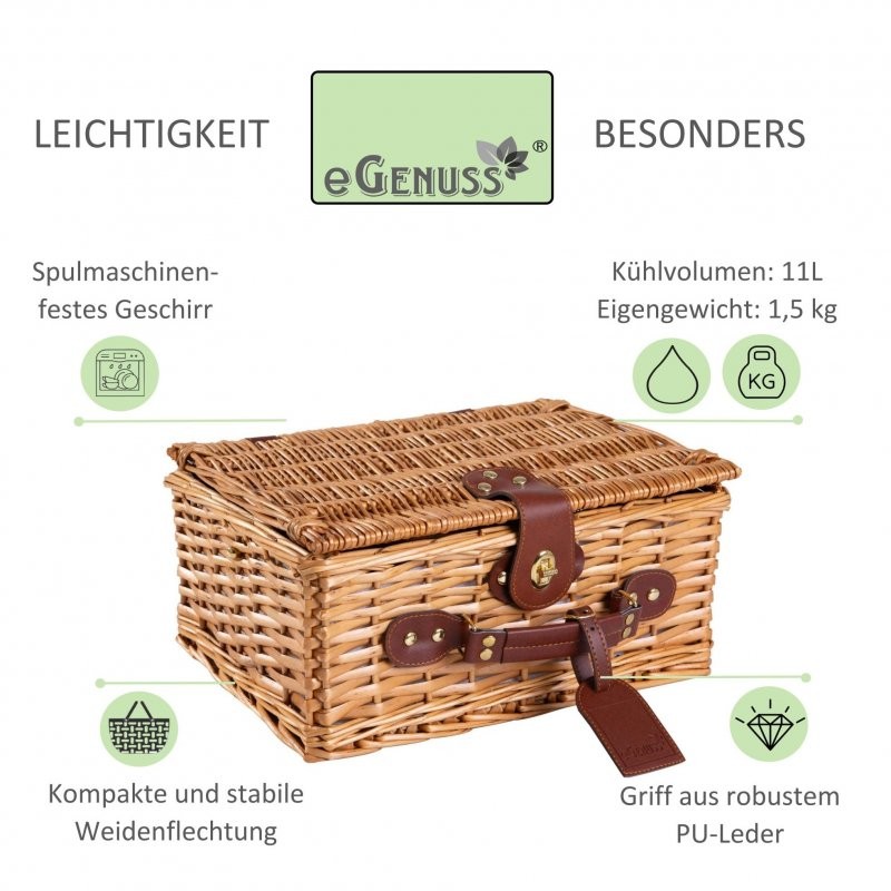 ? PICKNICKKORB - Der Korb für 2 Personen ist handgewebt aus Naturweide. Dank des großen Kühlfachs können Sie genug Essen und Trinken einpacken. Perfekt für ein Familienpicknick und als Geschenk.